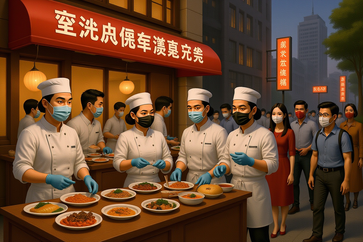 – Hygiene and Trust: Chefs wear hats, masks, and gloves, emphasizing non-pre-made ingredients.
