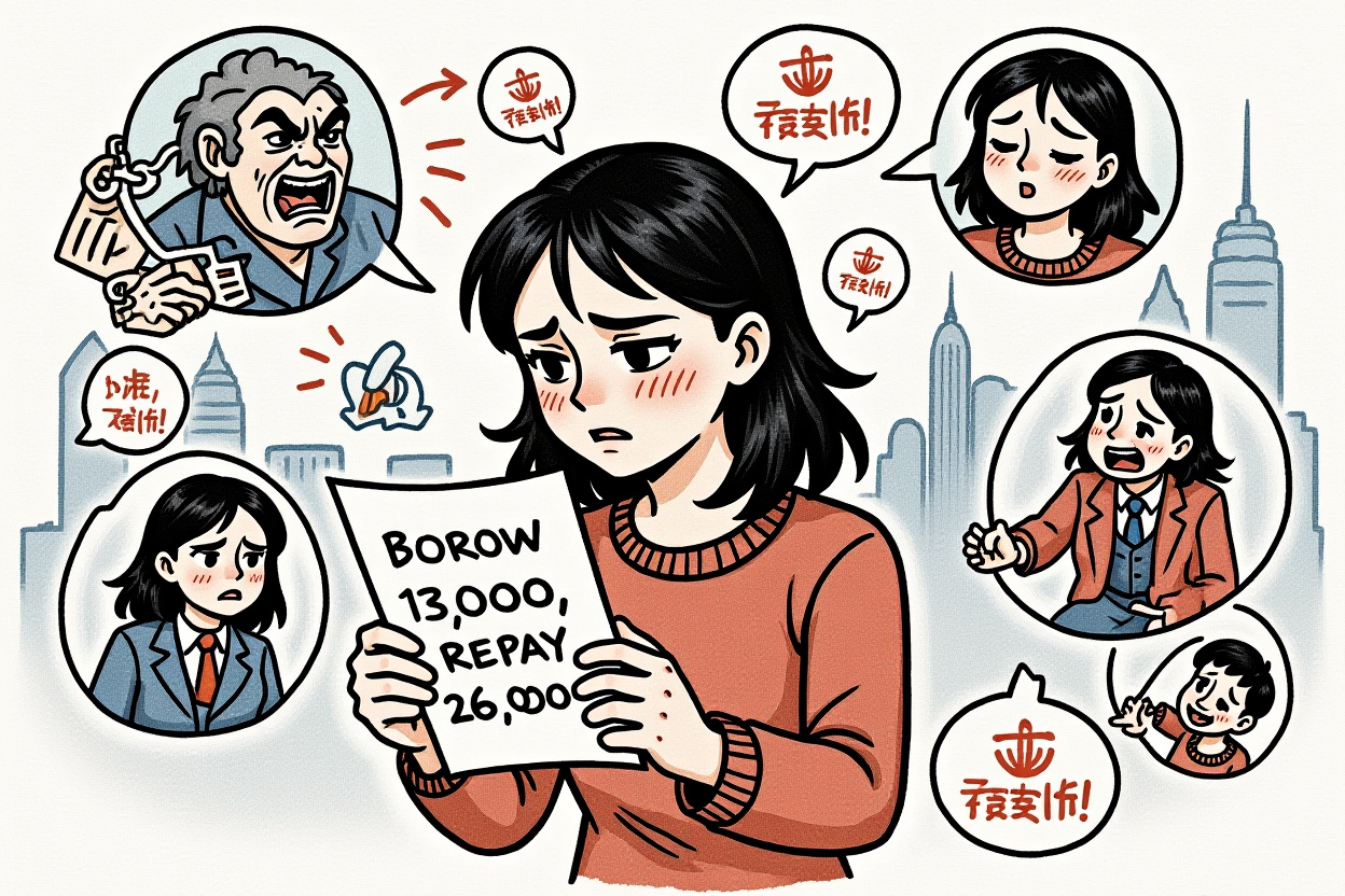 Ms. Chen (陈女士), a university student at the time, borrowed 13,674 yuan from Fenqile (分期乐) between 2020 and 2021 for everyday expenses, including a 400-yuan purchase split over 36 months. Her five loans carried annual interest rates ranging from 32.08% to 35.90%, far above the regulatory cap of 24%. Despite initial promises of “low monthly payments,” she now faces a total repayment of 26,859 yuan—nearly double her principal. After defaulting in August 2022, she endured over 1,000 days of harassment from debt collectors, who contacted her family and friends, leading to severe depression. This case underscores how mini-loans can escalate manageable debts into unpayable sums through deceptive practices.